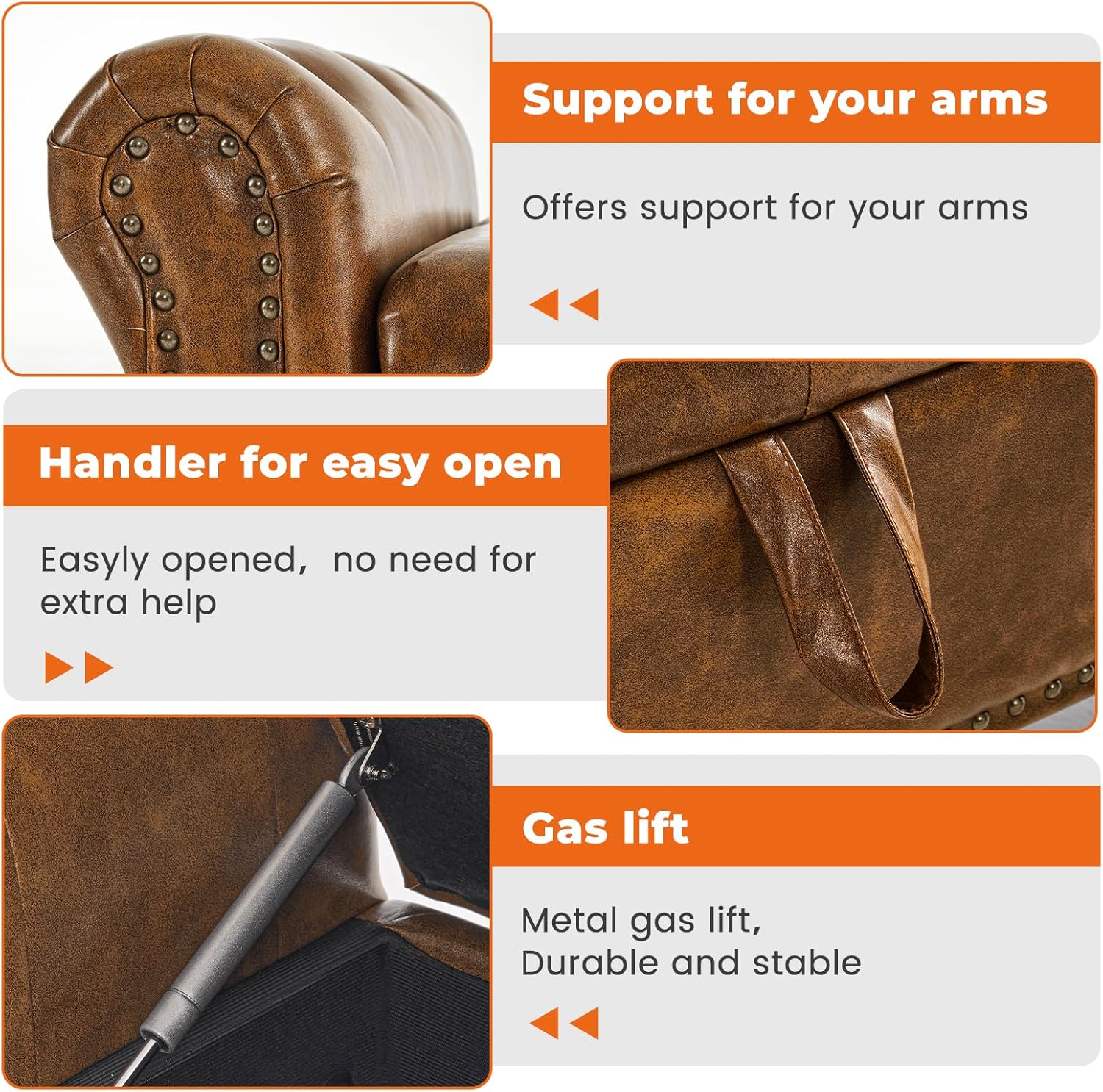 Furniliving Storage Ottoman Bench, Leather Benches End of Bed Bench with Solid Wood Legs Upholstered Ottoman Bench with Storage Indoor Bench for Living Room with Rolled Arm, Entryway, YellowBrown
